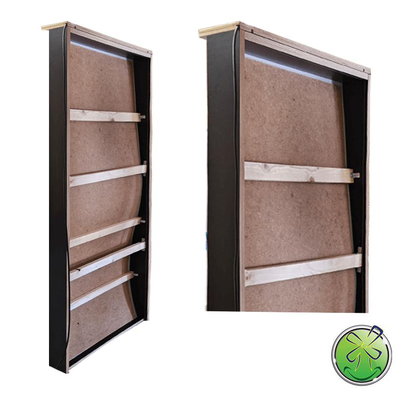 Parfois, vous voulez simplement avoir la certitude qu'aucune éclat ne se formera si un miroir venait à se briser pour une raison quelconque. Dans ce cas, vous pouvez choisir de faire renforcer davantage le dos du miroir par nos soins. Pour ce faire, nous appliquons une couche de ruban adhésif double face sur toute la surface arrière du miroir pendant le processus de production. Nous y fixons ensuite une plaque de panneau dur que nous renforçons à nouveau aux points « faibles ».